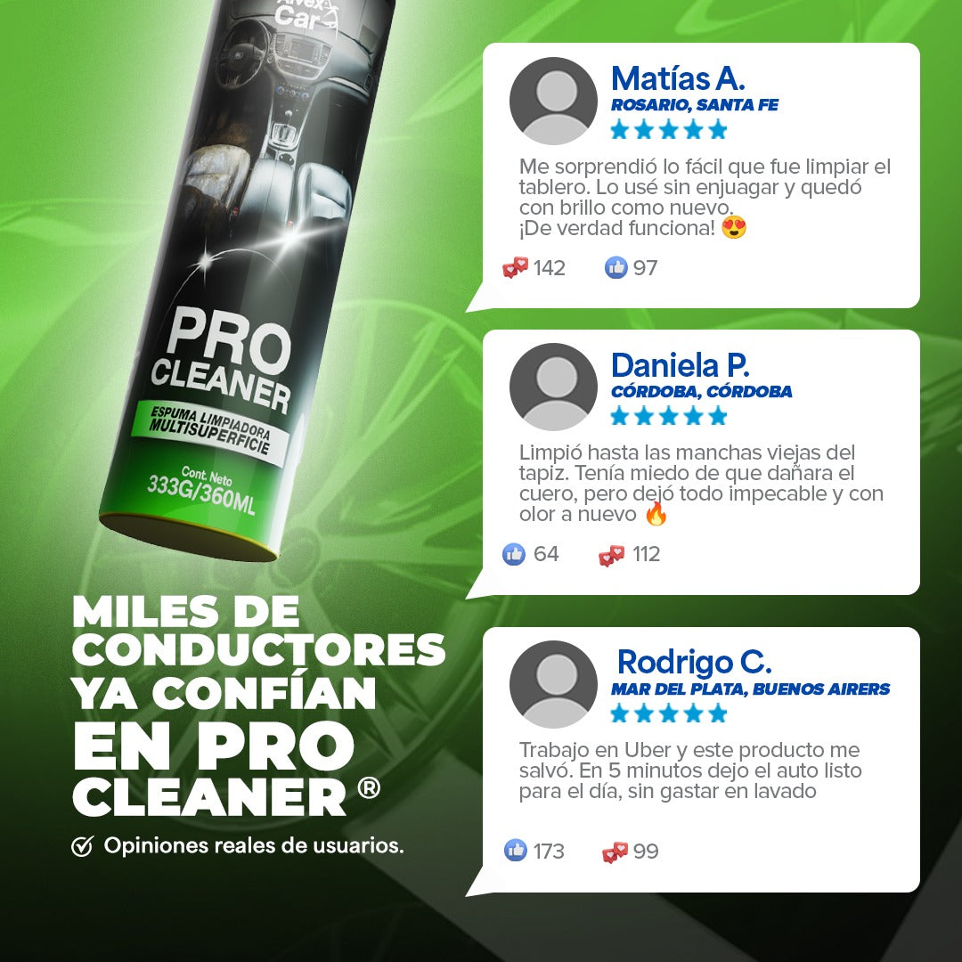 Tapices manchados, puertas con grasa, tablero opaco… todo eso desaparece con ProClean® Espuma Limpiadora Multifuncional.