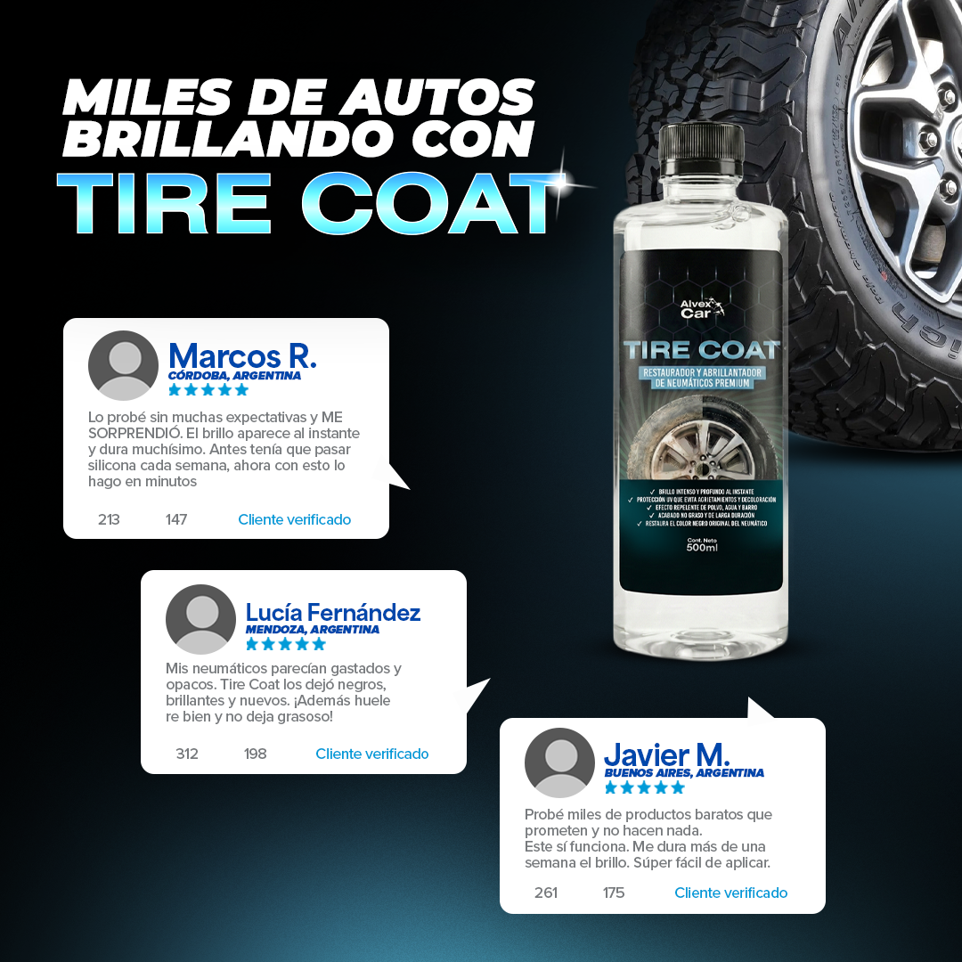 Con TireCoat®, tus neumáticos adquieren un acabado negro brillante, defensa contra el desgaste y una hidratación que resalta al instante… logrando un look limpio, elegante y de alto impacto visual.